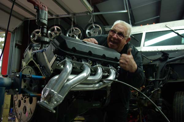 Back at Wood Motors, Jim came out to see how "his" engine was doing. Kind of like a proud papa.