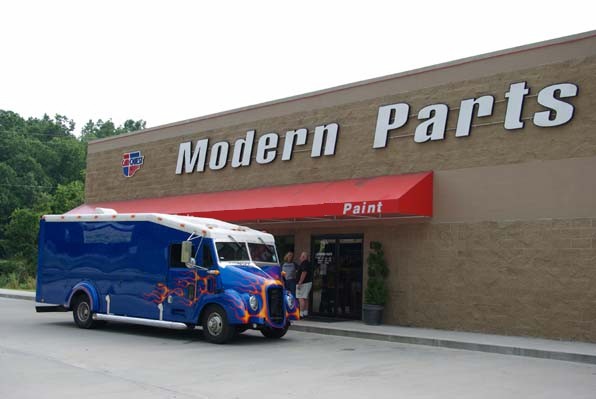 The paint and body supplies came from Modern Parts in Harrison. These people know paint and were very helpful to the project. Fun to deal with too. That's John and Dana from Modern Parts with Norm, you should be able to figure out, who's who.