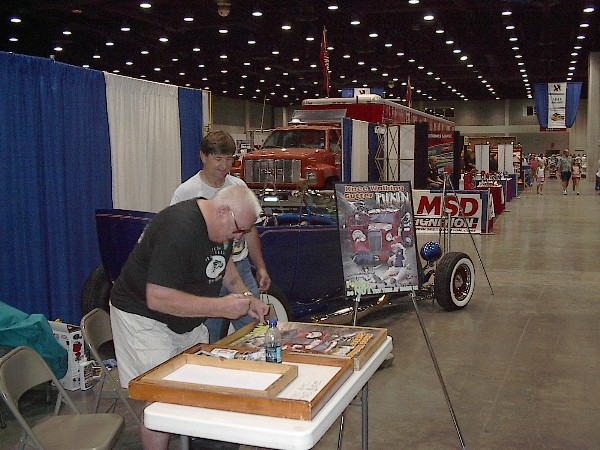 alone it was tough to crank the engine and view the valve motion but all looked normal. Working on the Kookie Monster in the Louisville heat took the smile off Jimmy Meyers face. A few minutes out of the heat and Jimmy was back to normal. He shared a few funny jokes but wed better not repeat them here.