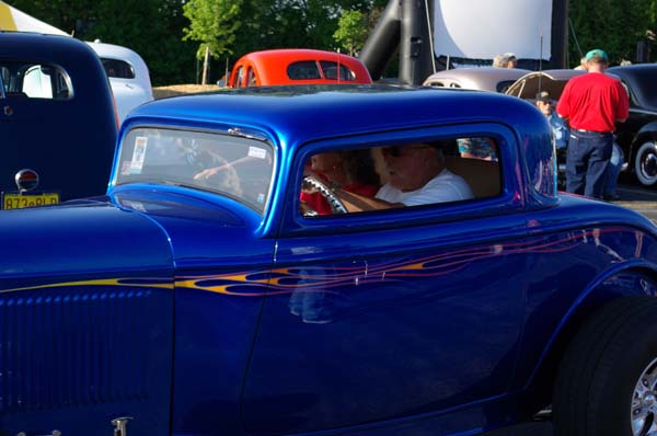Does Norm look so happy because hes surrounded by Hot Rods? Looks like hes made his way over to a nearby restaurant, a restaurant with a bar perhaps?