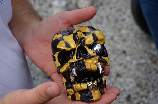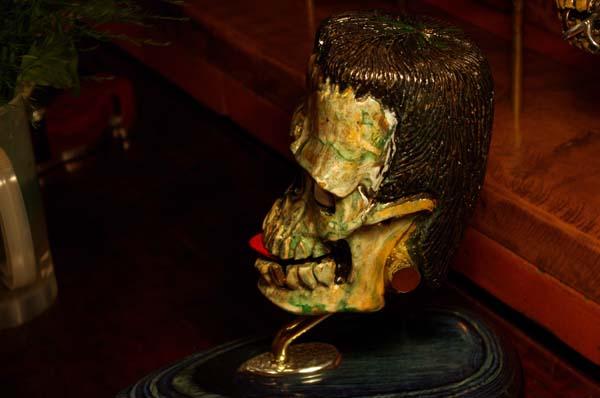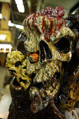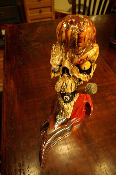 Welcome to MY CARVINGS. Ive created many Shifter Skulls and they appear on several websites. Here we have some things that are likely to be new to most of you. Skulls have been the majority of my carving activities for a long time but are you familiar with my rocking horses and other Masterpieces (the words of others)? The first photo is of a skull carved in 2008 for the Domain Keeper here at Norms News. He asked me to include some influence from the 60s Mopar weeping heart used in their ad campaigns.
