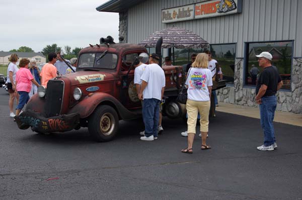 Jerry Slover kept an eye on Norm once he saw how fast Norms hands are. The Model A that Norm is doing with Razorback Rides was just a body until Norm saw the Winters Champ quick change. The projects budget just got bumped up but a gorgeous rear end is never cheap. A chrome 4 dropped Super Bell will round out the front of the A. The goodies never end at Pete and Jakes. That looks like Charlie Smith back there. How does he find time for shows and his art and www.motorburg.com Here is a